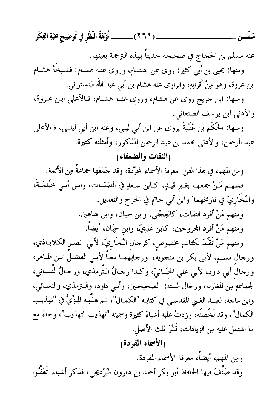وَمِن المهمِّ، في هذا الفنِّ: مَعْرِفَةِ الأَسْماءِ المجرَّدة، وقد جَمَعَها جماعةٌ مِن الأئمَّةِ.