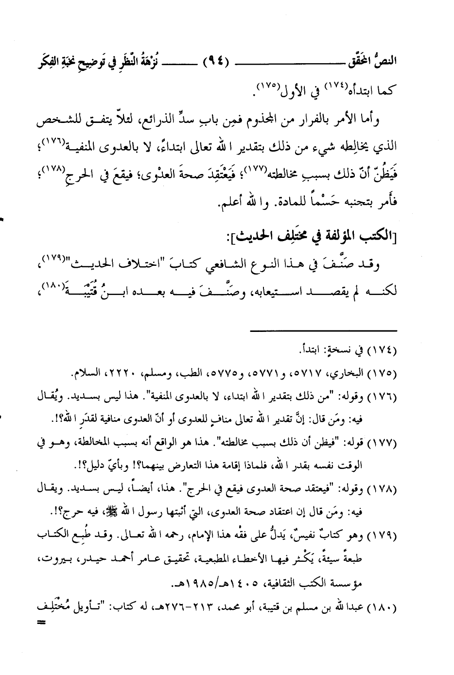 2 عبد الله بن مسلم بن قتيبة، أبو محمد، 213-276هـ، له كتاب: تأويل مُخْتَلِف الحديث، بيروت، المكتب الإسلامي، بتحقيق محمد محيي الدين الأصفر. وهو كتابٌ مفيدٌ، وعليه بعض المؤاخذات في عددٍ مِن أجوبته عن بعض الاستشكالات في دلالة الأحاديث.