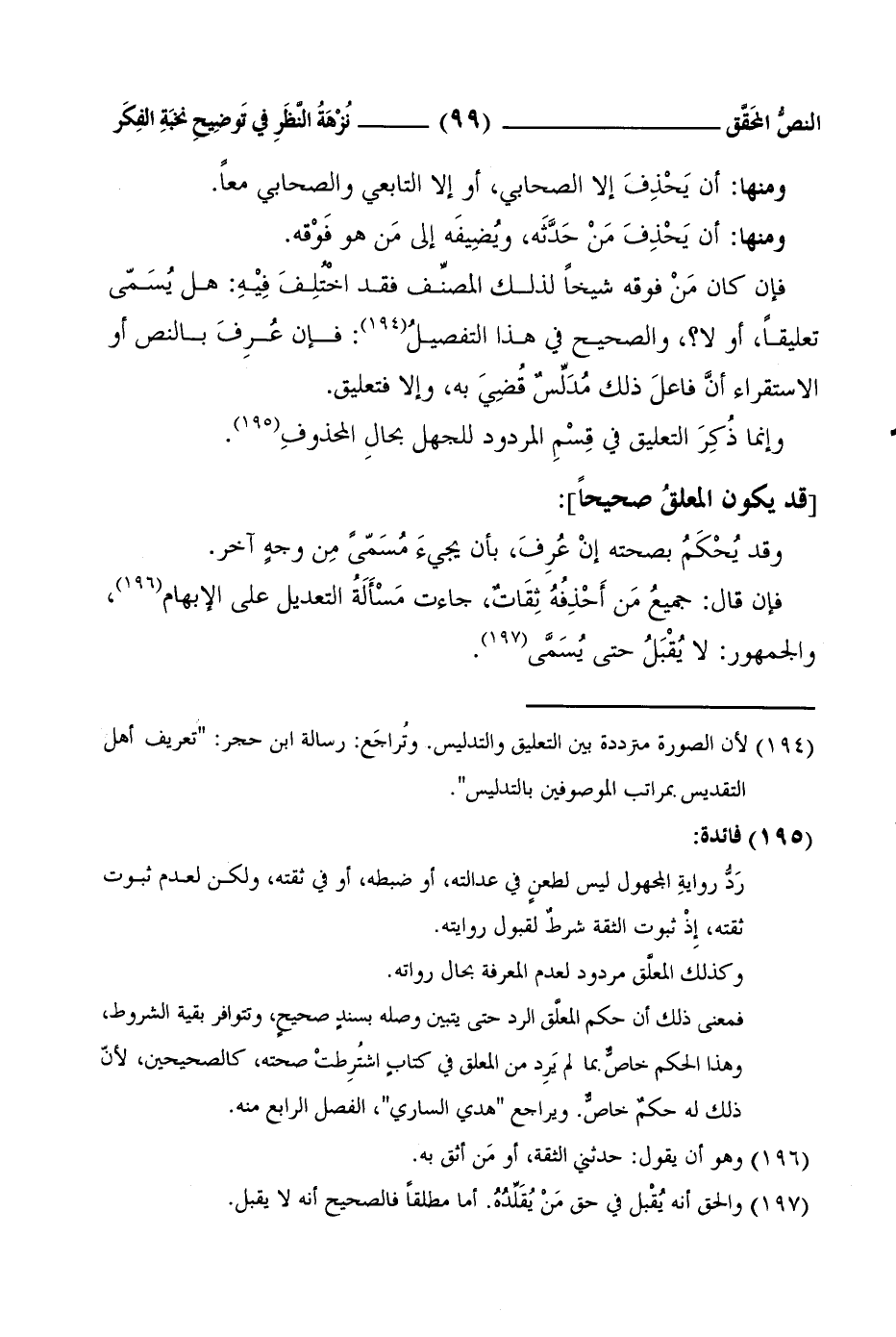 1 لأن الصورة مترددة بين التعليق والتدليس. وتُراجَع: رسالة ابن حجر: تعريف أهل التقديس بمراتب الموصوفين بالتدليس.