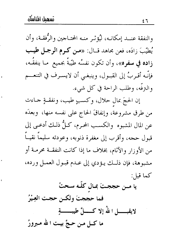 إن الحجَ بمالٍ حلال، وكسبٍ طيب، ونفقةٍ جاءت من طرق مشروعة، وإنفاق الحاج على نفسه منها، وبعدَه عن المال المشبوه والكسب المحرم، كلُّ ذلك أدعى إلى قبول حجه، وأقرب إلى مغفرة ذنوبه، وعودته سليماً نقياً من الأوزار والآثام، بخلاف ما إذا كانت النفقة محرمة أو مشبوهة، فإن ذلك يؤدي إلى عدم قبول العمل ورده، كما قيل: