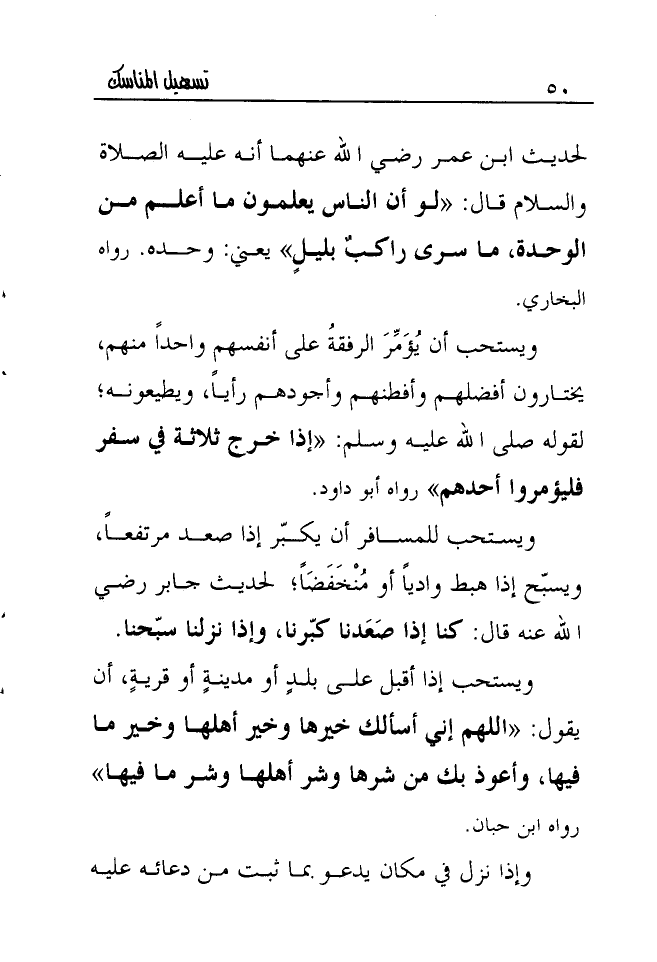 لحديث ابن عمر رضي الله عنهما أنه عليه الصلاة والسلام قال: "لو أن الناس يعلمون ما أعلم من الوحدة، ما سرى راكبٌ بليلٍ" يعني: وحده. رواه البخاري.