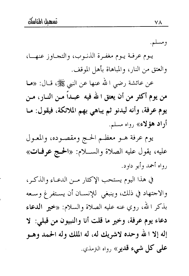 عن عائشة رضى الله عنها عن النبي صلى الله عليه وسلم، قال: " ما من يوم أكثر من أن يعتق الله فيه عبداً من النار، من يوم عرفة، وأنه ليدنو ثم يباهي بهم الملائكة، فيقول: ما أراد هؤلاء" رواه مسلم.