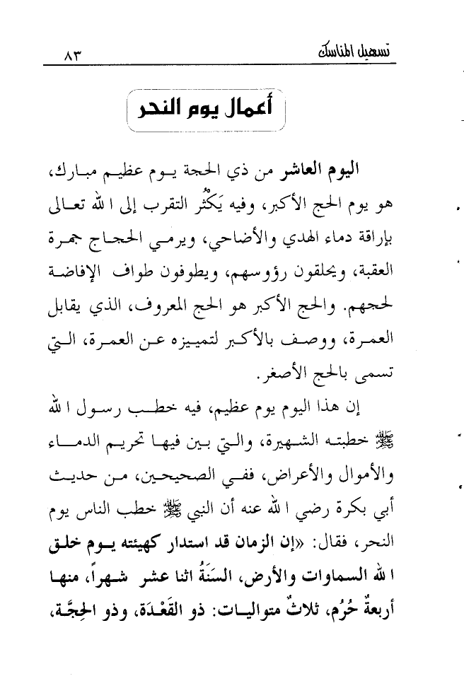 إن هذا اليوم يوم عظيم، فيه خطب رسول الله صلى الله عليه وسلم خطبته الشهيرة، والتي بين فيها تحريم الدماء والأموال والأعراض، ففي الصحيحين، من حديث أبى بكرة رضي الله عنه أن النبي صلى الله عليه وسلم خطب الناس يوم النحر، فقال: