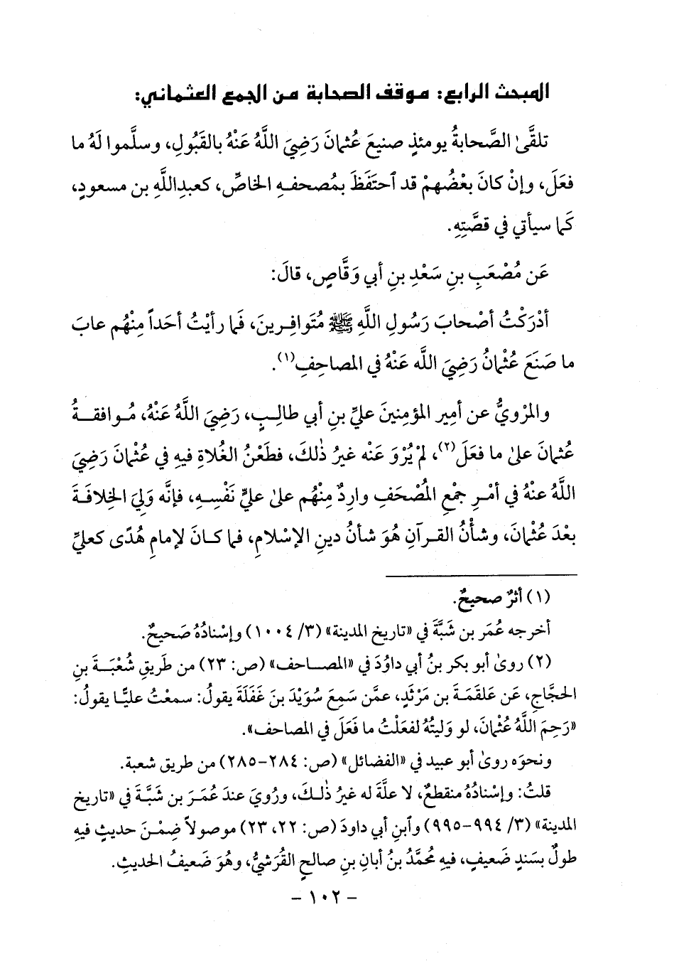 المبحث الرابع: موقف الصحابة من الجمع العثماني