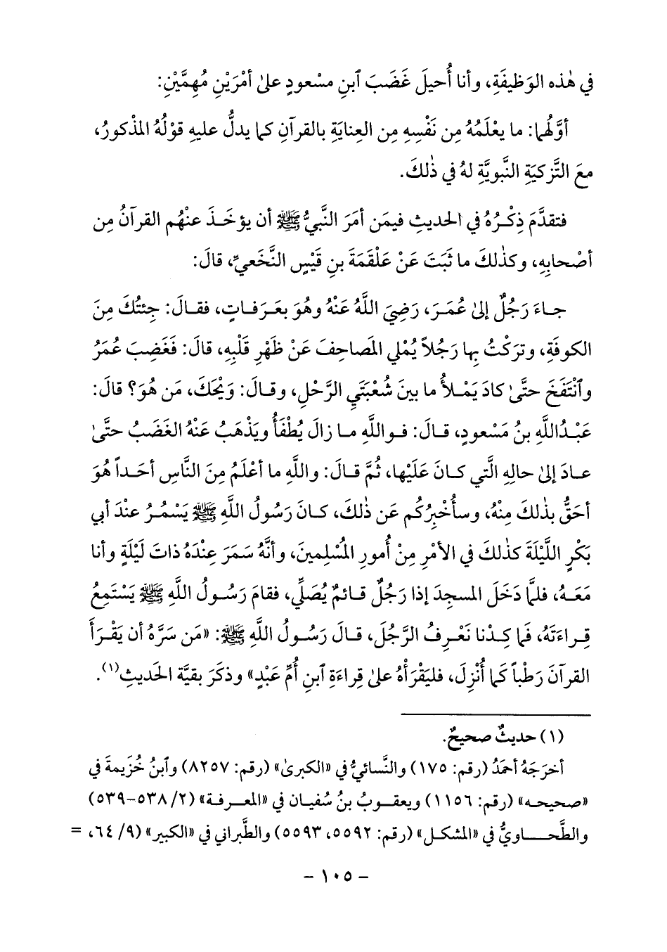 في هذه الوظيفة، وأنا أحيل غضب ابن مسعود على أمرين مهمّين: