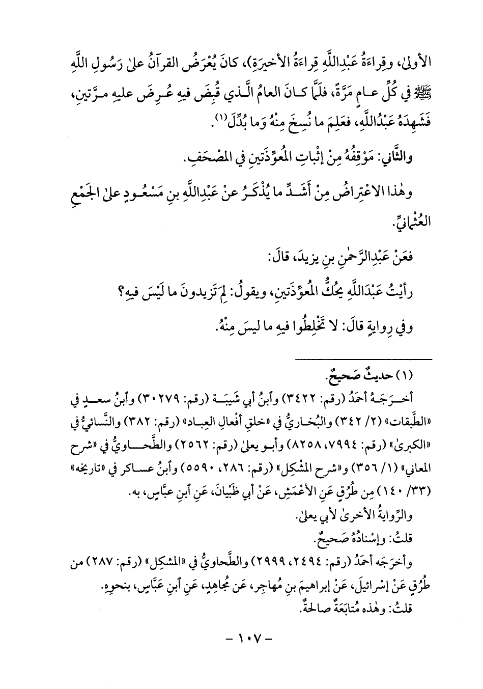 فعن عبد الرّحمن بن يزيد، قال: رأيت عبد الله يحكّ المعوّذتين، ويقول: لم تزيدون ما ليس فيه؟