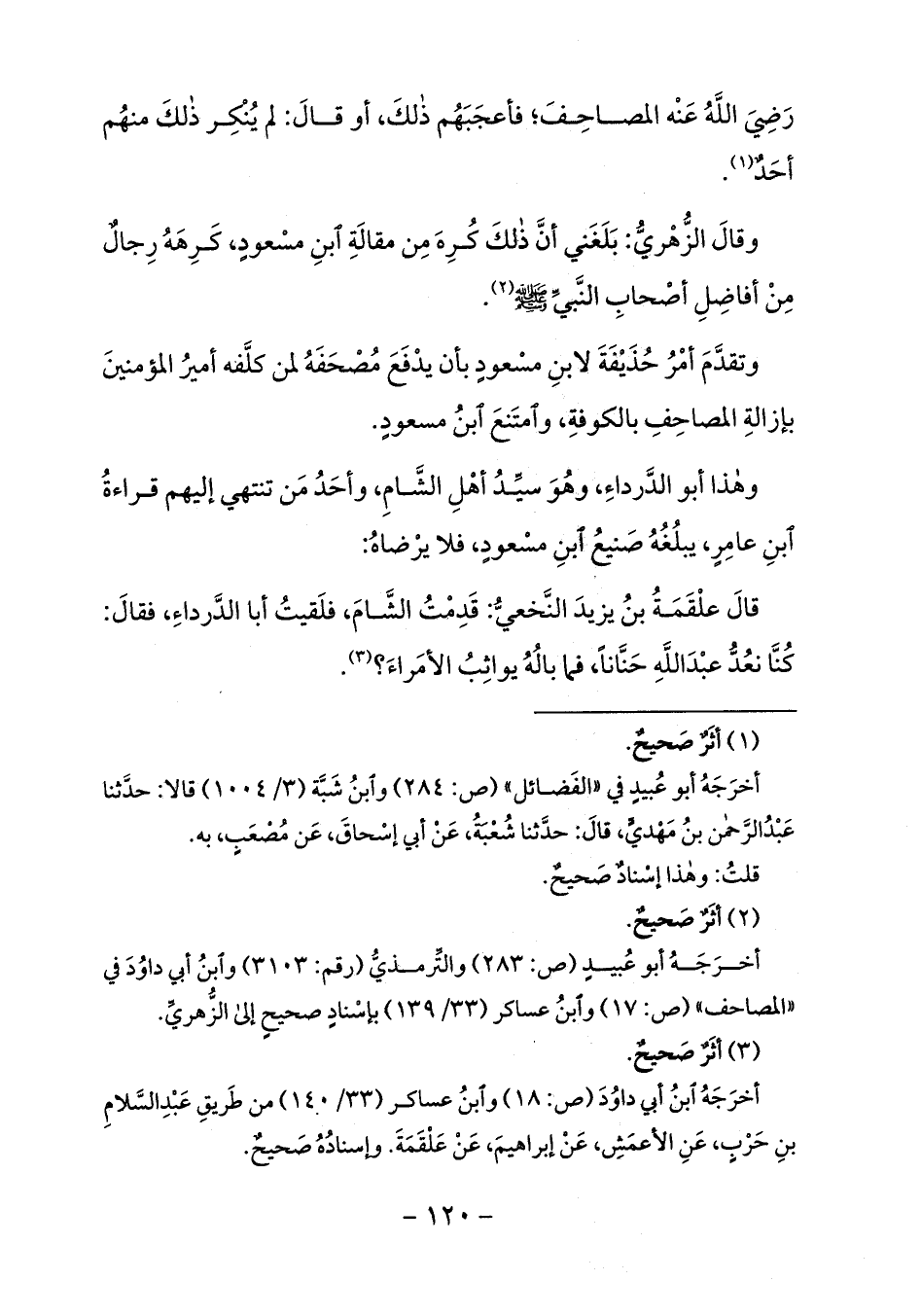 (¬3) أثر صحيح. أخرجه ابن أبي داود (ص: 18) وابن عساكر (33/ 140) من طريق عبد السّلام بن حرب، عن الأعمش، عن إبراهيم، عن علقمة. وإسناده صحيح.