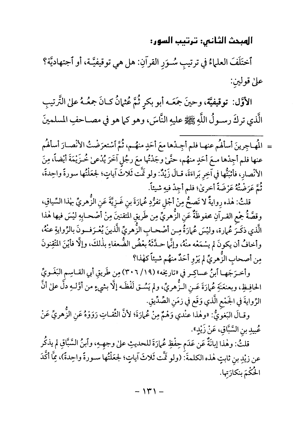 اختلف العلماء في ترتيب سور القرآن: هل هي توقيفيّة، أو اجتهاديّة؟ على قولين: