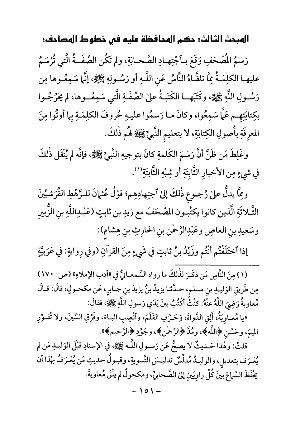 المبحث الثالث: حكم المحافظة عليه في خطوط المصاحف