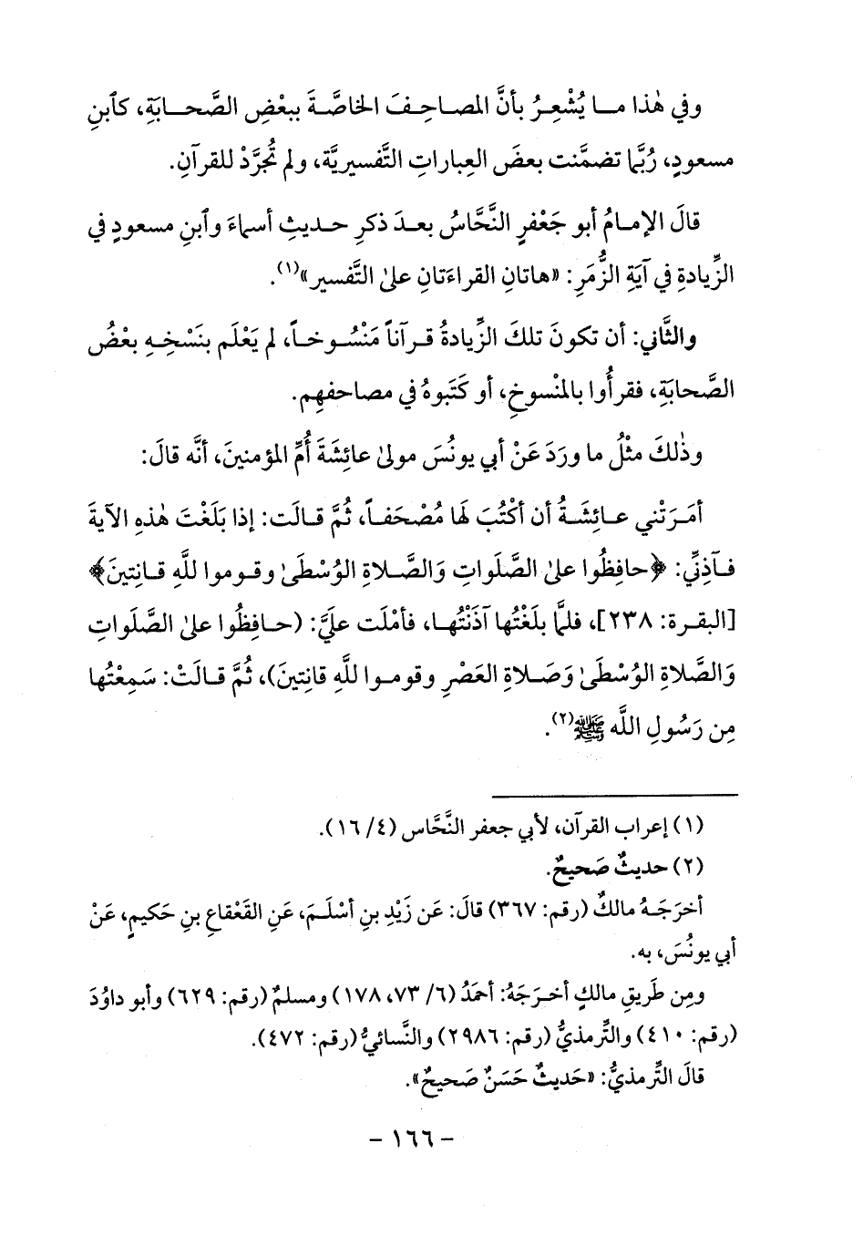 وفي هذا ما يشعر بأنّ المصاحف الخاصّة ببعض الصّحابة، كابن مسعود، ربّما تضمّنت بعض العبارات التّفسيريّة، ولم تجرّد للقرآن.