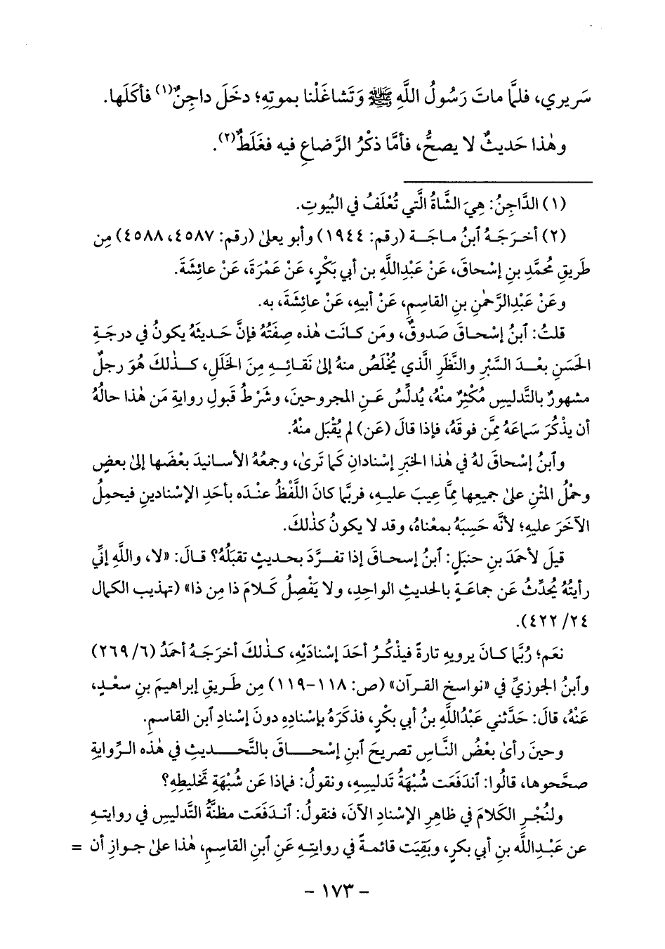 (¬2) أخرجه ابن ماجة (رقم: 1944) وأبو يعلى (رقم: 4587، 4588) من طريق محمّد بن إسحاق، عن عبد الله بن أبي بكر، عن عمرة، عن عائشة.