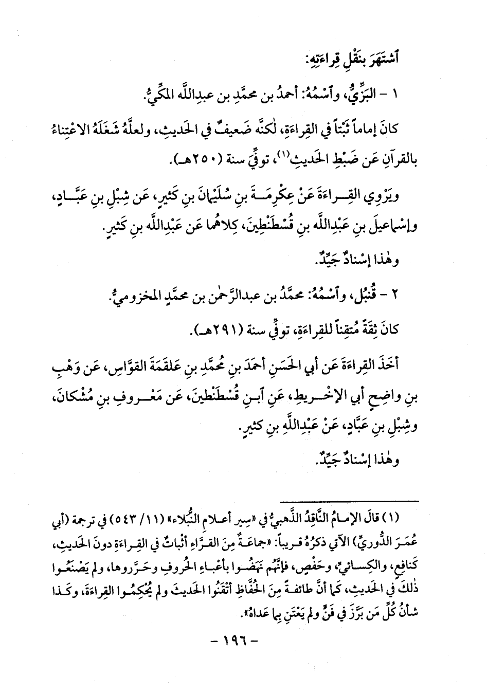 (¬1) قال الإمام النّاقد الذّهبيّ في «سير أعلام النّبلاء» (11/ 543) في ترجمة (أبي عمر الدّوريّ) الآتي ذكره قريبا: «جماعة من القرّاء أثبات في القراءة دون الحديث، كنافع، والكسائيّ، وحفص، فإنّهم نهضوا بأعباء الحروف وحرّروها، ولم يصنعوا ذلك في الحديث، كما أنّ طائفة من الحفّاظ أتقنوا الحديث ولم يحكموا القراءة، وكذا شأن كلّ من برّز في فنّ ولم يعتن بما عداه».