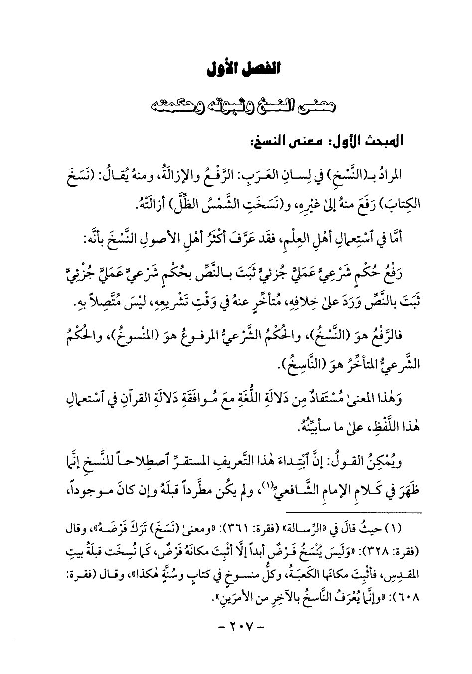 الفصل الأول: معنى النسخ وثبوته وحكمته