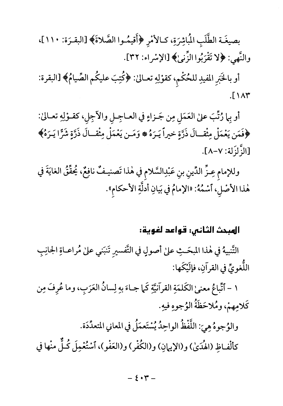 وللإمام عزّ الدّين بن عبد السّلام في هذا تصنيف نافع، يحقّق الغاية في هذا الأصل، اسمه: «الإمام في بيان أدلّة الأحكام».