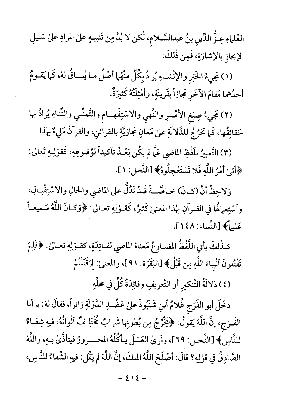 العلماء عزّ الدّين بن عبد السّلام، لكن لا بدّ من تنبيه على المراد على سبيل الإيجاز بالإشارة، فمن ذلك: