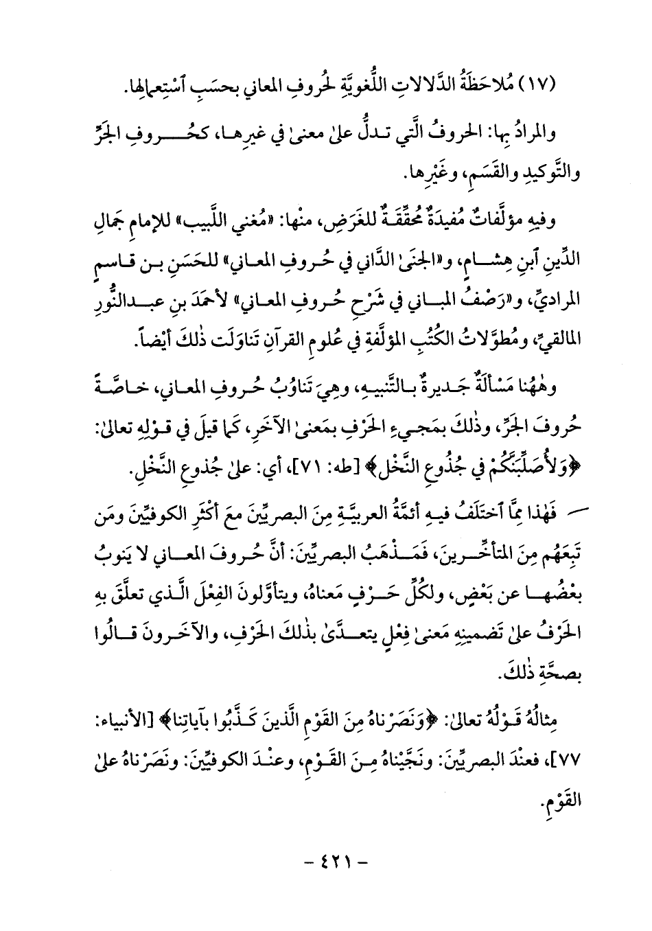 [17] ملاحظة الدّلالات اللّغويّة لحروف المعاني بحسب استعمالها.