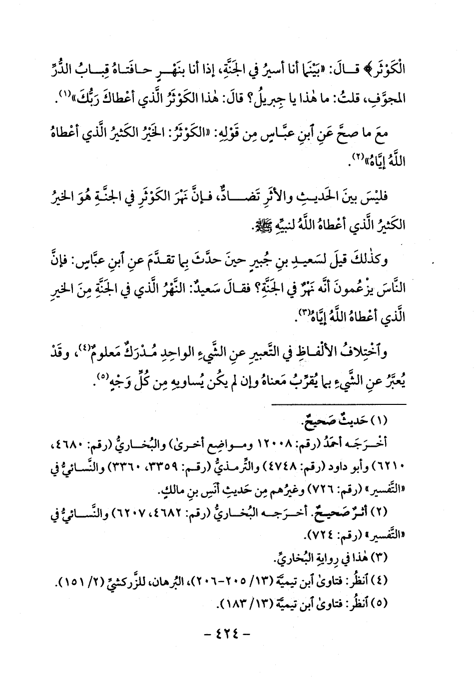 مع ما صحّ عن ابن عبّاس من قوله: «الكوثر: الخير الكثير الّذي أعطاه الله إيّاه» (¬2).