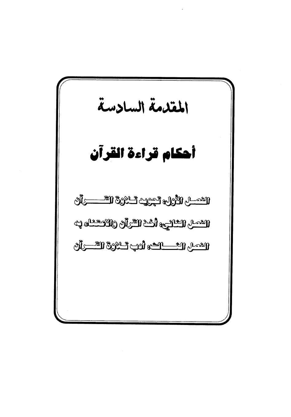 الفصل الأول: تجويد تلاوة القرآن الفصل الثاني: أخذ القرآن والاعتناء به الفصل الثالث: أدب تلاوة القرآن