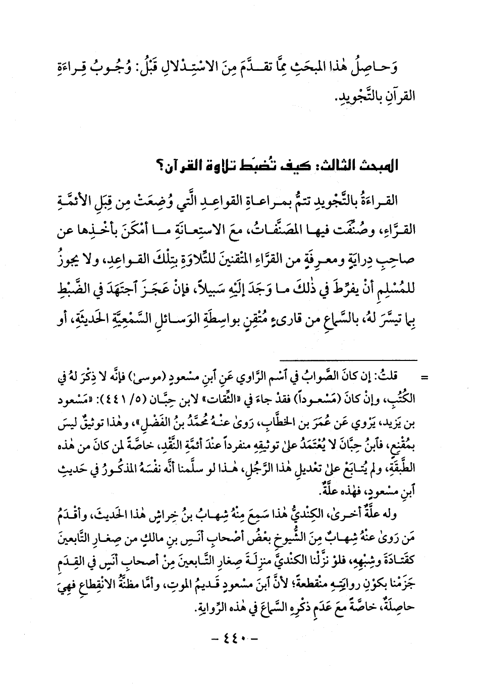 وحاصل هذا المبحث ممّا تقدّم من الاستدلال قبل: وجوب قراءة القرآن بالتّجويد.