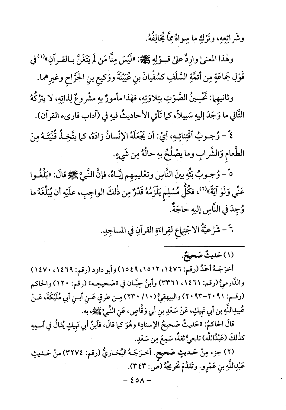 وهذا المعنى وارد على قوله صلى الله عليه وسلم: «ليس منّا من لم يتغنّ بالقرآن» (¬1) في قول جماعة من أئمّة السّلف كسفيان بن عيينة ووكيع بن الجرّاح وغيرهما.