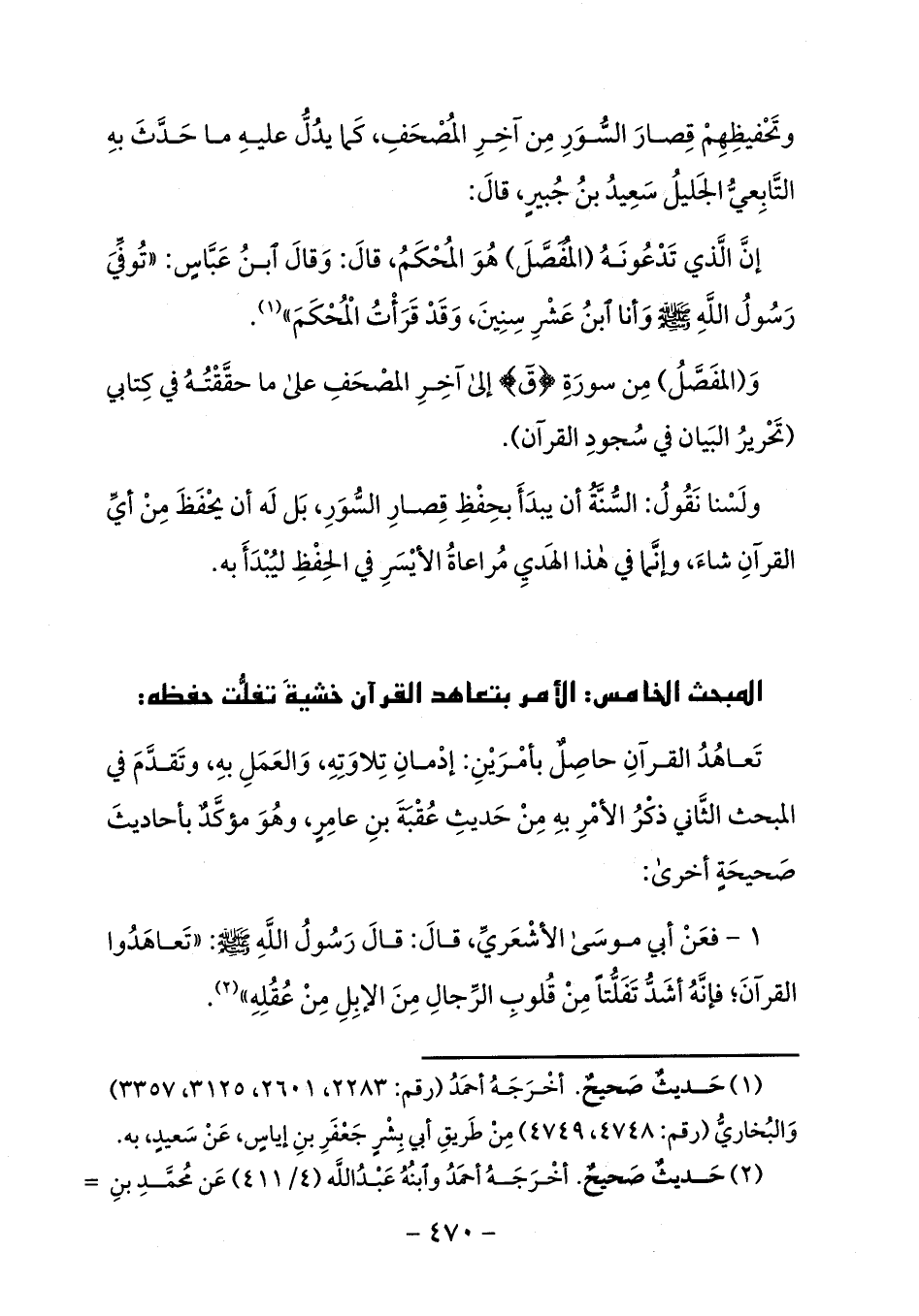 المبحث الخامس: الأمر بتعاهد القرآن خشية تفلّت حفظه