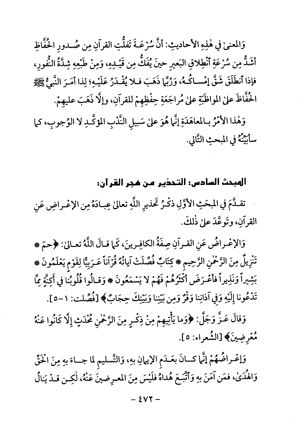 المبحث السادس: التحذير من هجر القرآن