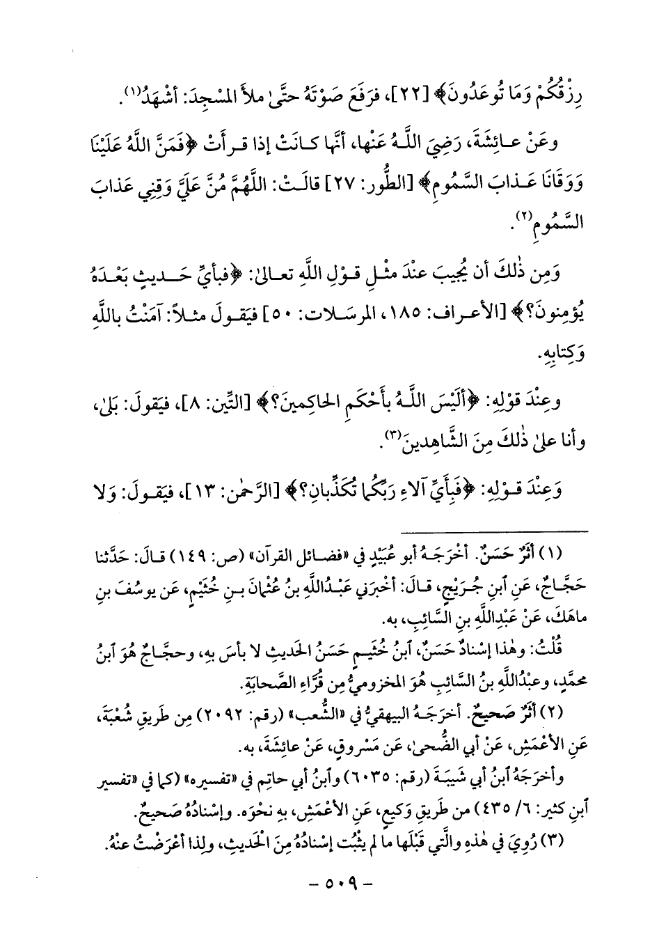 رِزْقُكُمْ وَما تُوعَدُونَ 22 [22]، فرفع صوته حتّى ملأ المسجد: أشهد (¬1).