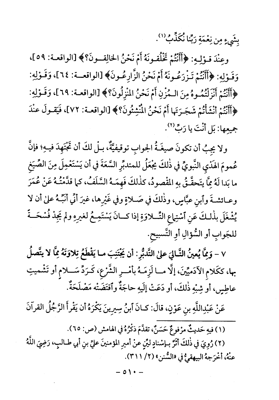 أَأَنْتُمْ أَنْشَأْتُمْ شَجَرَتَها أَمْ نَحْنُ الْمُنْشِؤُنَ 72 [الواقعة: 72]، فيقول عند جميعها: بل أنت يا ربّ (¬2).