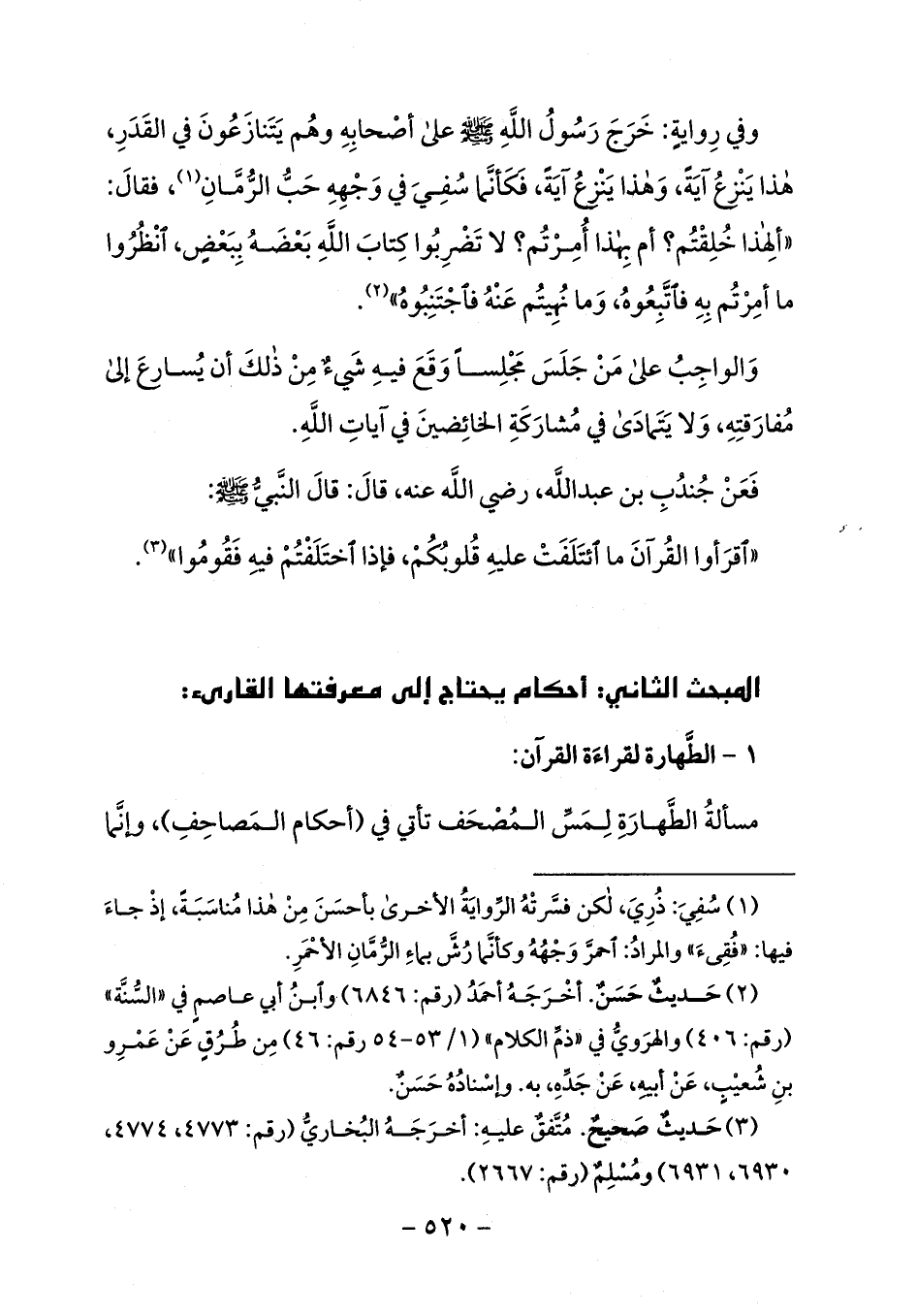 المبحث الثاني: أحكام يحتاج إلى معرفتها القارئ