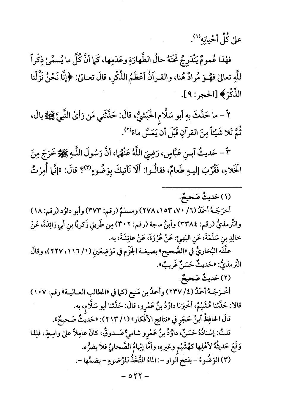 2 - ما حدّث به أبو سلّام الحبشيّ، قال: حدّثني من رأى النّبيّ صلى الله عليه وسلم بال، ثمّ تلا شيئا من القرآن قبل أن يمسّ ماء (¬2).