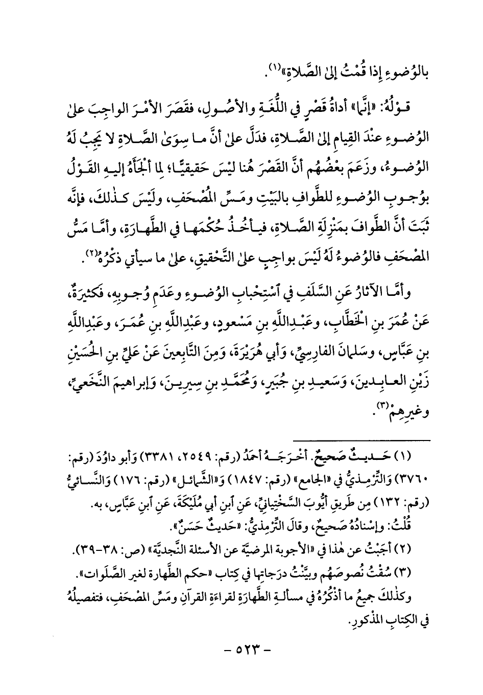 (¬3) سقت نصوصهم وبيّنت درجاتها في كتاب «حكم الطّهارة لغير الصّلوات».