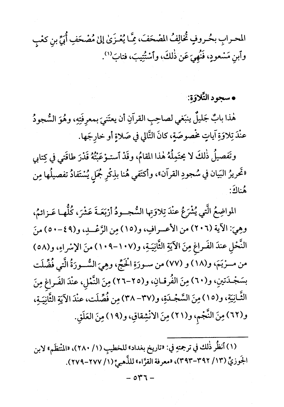 وتفصيل ذلك لا يحتمله هذا المقام، وقد استوعبته قدر طاقتي في كتابي «تحرير البيان في سجود القرآن»، وأكتفي هنا بذكر جمل يستفاد تفصيلها من هناك: