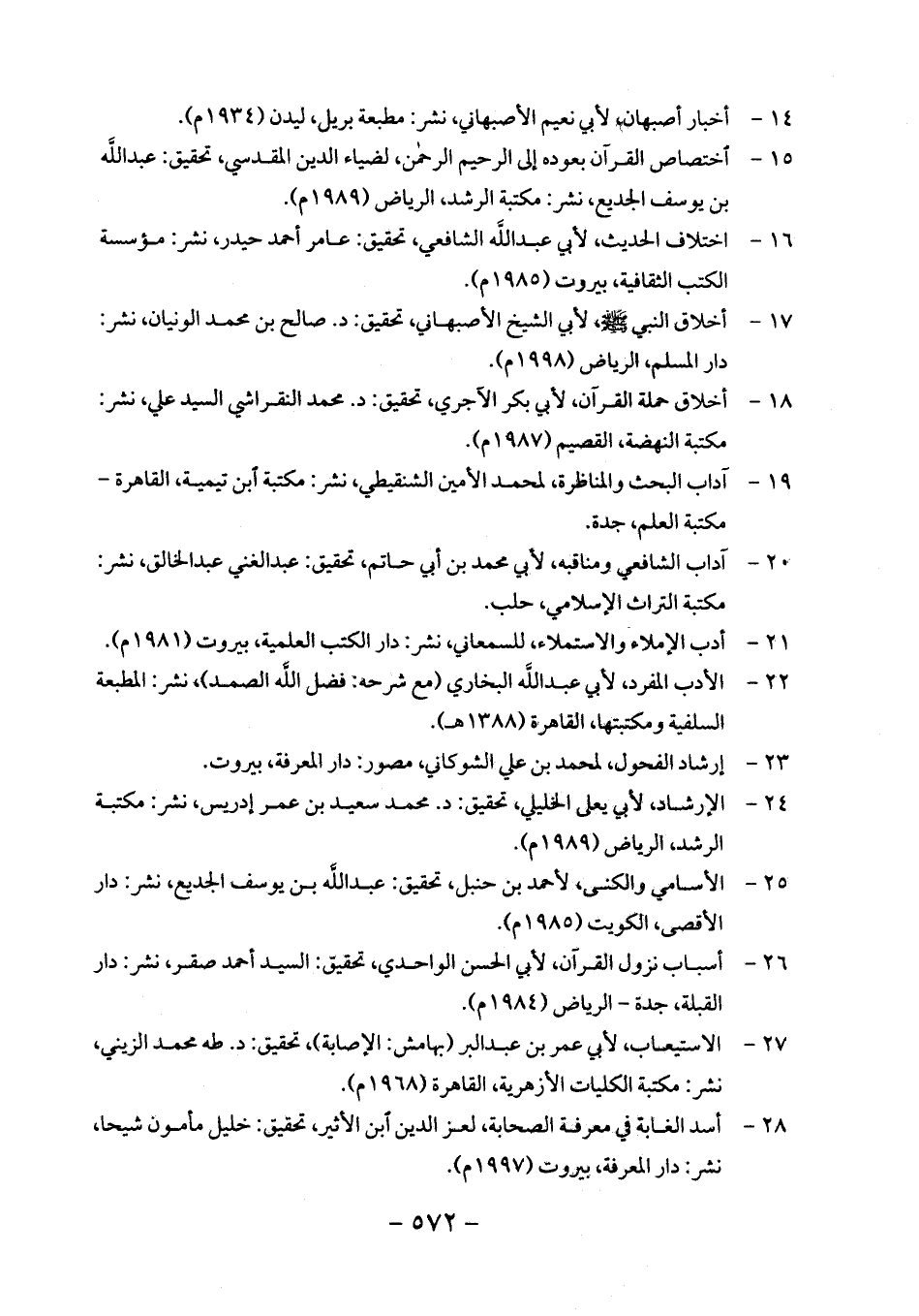 21 - أدب الإملاء والاستملاء، للسمعاني، نشر: دار الكتب العلمية، بيروت (1981 م).