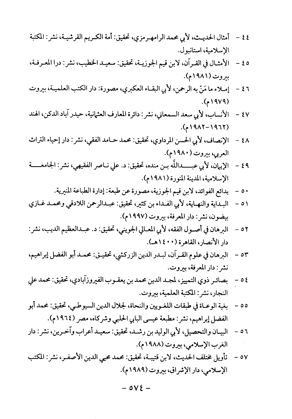 47 - الأنساب، لأبي سعد السمعاني، نشر: دائرة المعارف العثمانية، حيدرآباد الدكن، الهند (1962 - 1982 م).