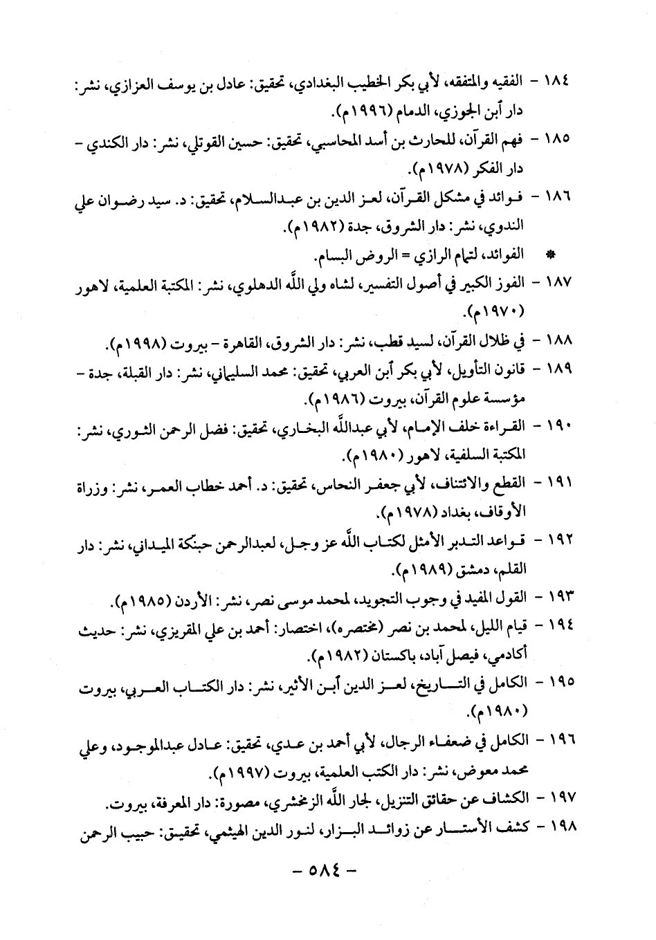 189 - قانون التأويل، لأبي بكر ابن العربي، تحقيق: محمد السليماني، نشر: دار القبلة، جدة- مؤسسة علوم القرآن، بيروت (1986 م).