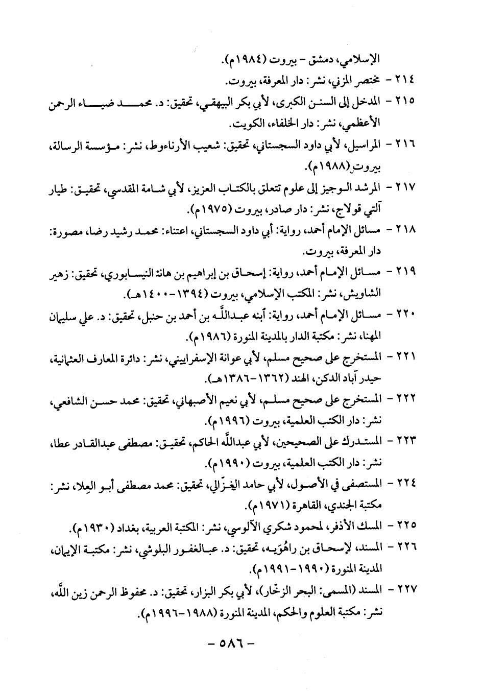 216 - المراسيل، لأبي داود السجستاني، تحقيق: شعيب الأرناءوط، نشر: مؤسسة الرسالة، بيروت (1988 م).