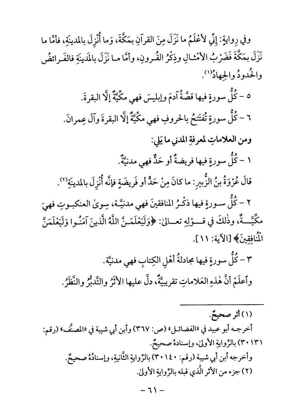 1 - كلّ سورة فيها فريضة أو حدّ فهي مدنيّة.