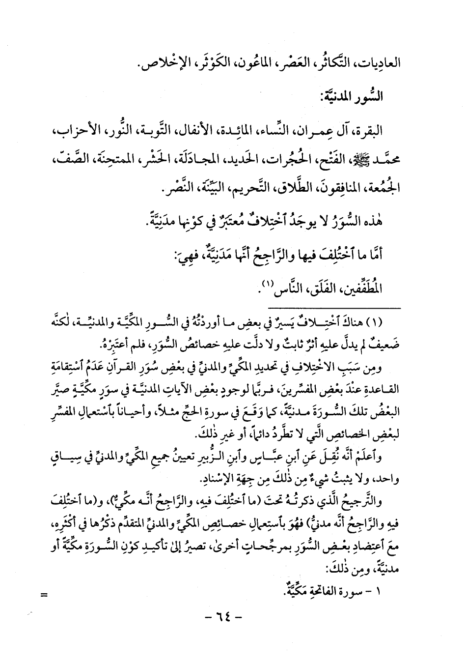 (¬1) هناك اختلاف يسير في بعض ما أوردته في السّور المكّيّة والمدنيّة، لكنّه ضعيف لم يدلّ عليه أثر ثابت ولا دلّت عليه خصائص السّور، فلم أعتبره.