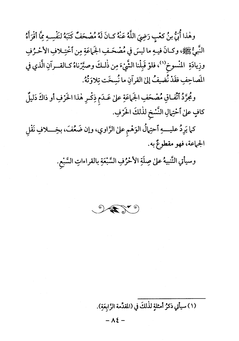 ومجرّد اتّفاق مصحف الجماعة على عدم ذكر هذا الحرف أو ذاك دليل كاف على احتمال النّسخ لذلك الحرف.