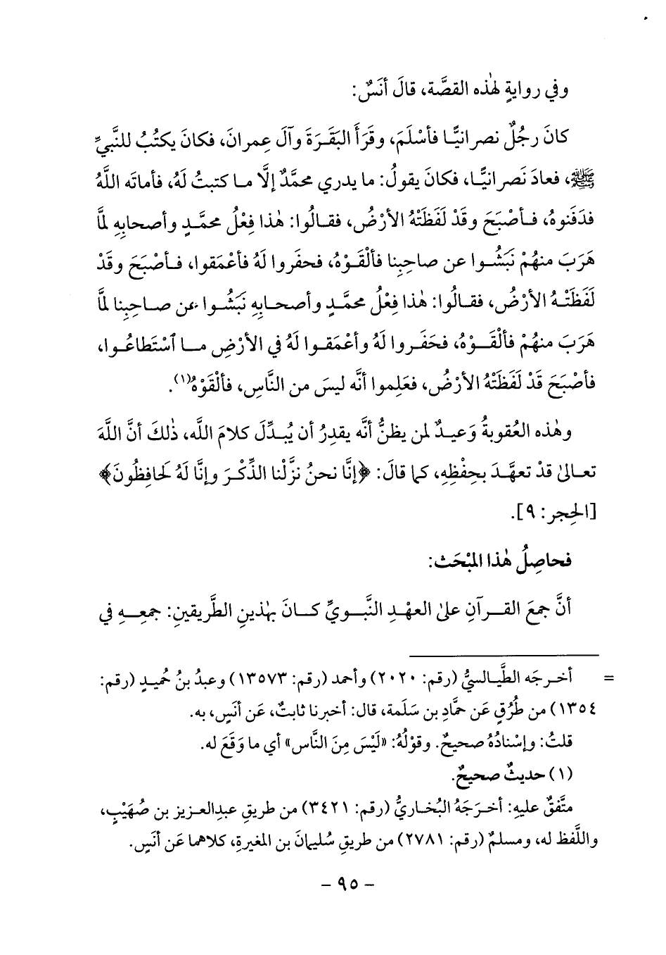 كان رجل نصرانيّا فأسلم، وقرأ البقرة وآل عمران، فكان يكتب للنّبيّ صلى الله عليه وسلم، فعاد نصرانيّا، فكان يقول: ما يدري محمّد إلّا ما كتبت له، فأماته الله فدفنوه، فأصبح وقد لفظته الأرض، فقالوا: هذا فعل محمّد وأصحابه لمّا هرب منهم نبشوا عن صاحبنا فألقوه، فحفروا له فأعمقوا، فأصبح وقد لفظته الأرض، فقالوا: هذا فعل محمّد
