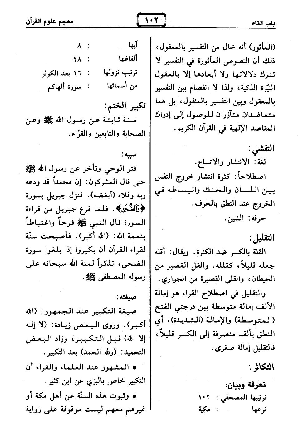 : ترتيبها المصحفي: 102 نوعها: مكية آيها: 8 ألفاظها: 28 ترتيب نزولها: 16 بعد الكوثر من أسمائها: سورة ألهاكم