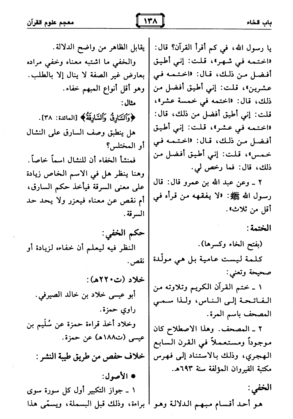 2 - وعن عبد الله بن عمرو قال: قال رسول الله صلّى الله عليه وسلّم: «لا يفقهه من قرأه في أقل من ثلاث».