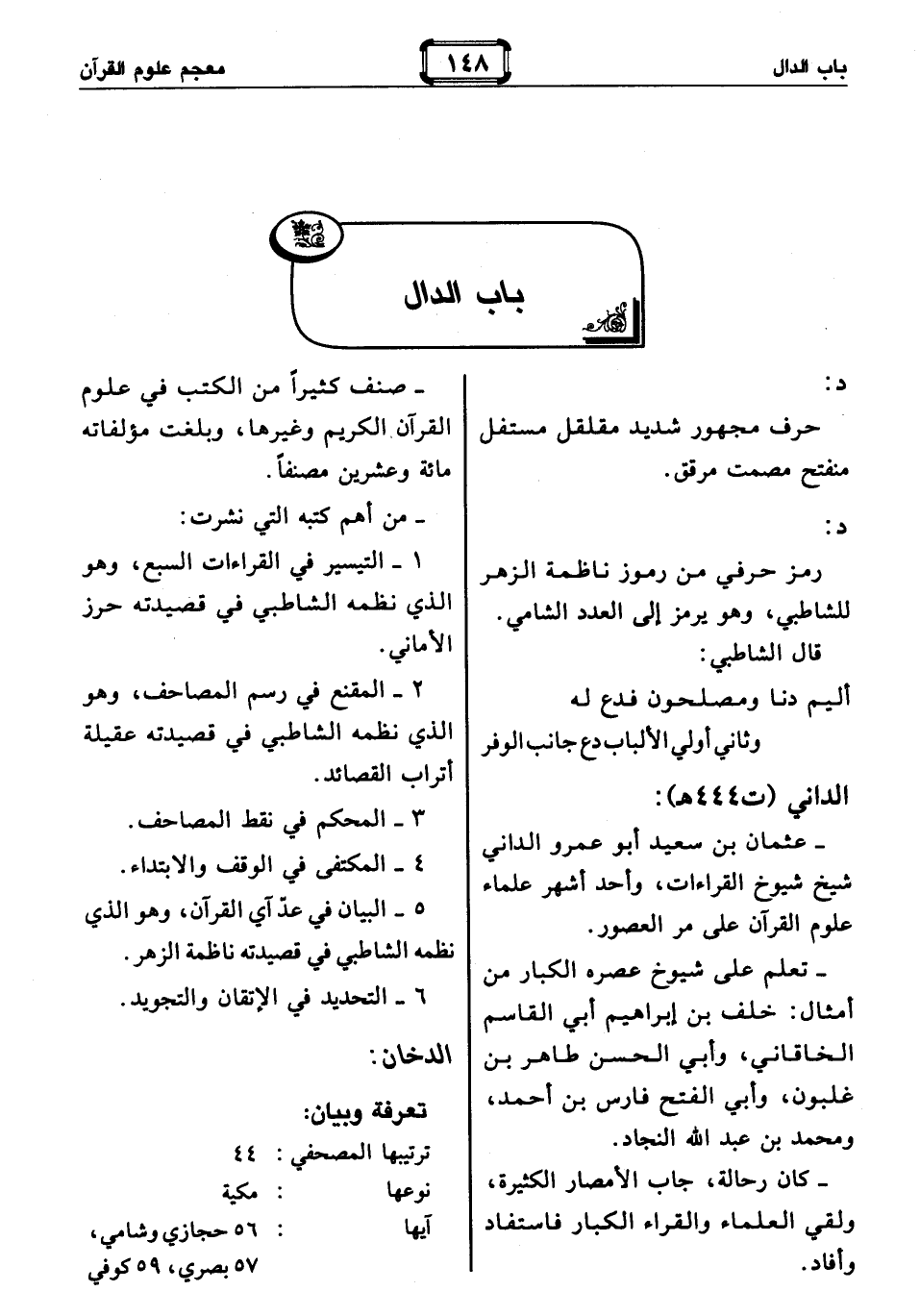:- عثمان بن سعيد أبو عمرو الداني شيخ شيوخ القراءات، وأحد أشهر علماء علوم القرآن على مر العصور.