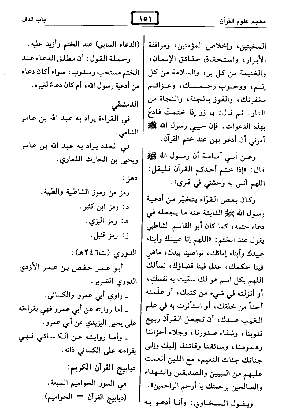 المخبتين، وإخلاص المؤمنين، ومرافقة الأبرار، واستحقاق حقائق الإيمان، والغنيمة من كل بر، والسلامة من كل إثم، ووجوب رحمتك، وعزائم مغفرتك، والفوز بالجنة، والنجاة من النار. ثم قال: يا زر إذا ختمت فادع بهذه الدعوات، فإن حبيبي رسول الله صلّى الله عليه وسلّم أمرني أن أدعو بهن عند ختم القرآن.