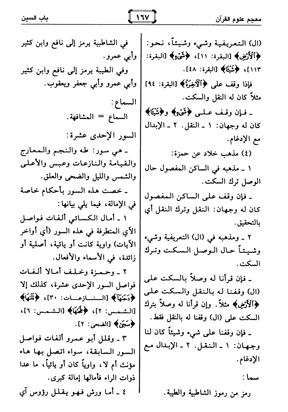 2 - وحمزة وخلف أمالا ألفات فواصل السور الإحدى عشرة، كذلك إلا دَحاها [النازعات: 30]، تَلاها [الشمس: 2]، طَحاها [الشمس: 6]، سَجى [الضحى: 2].