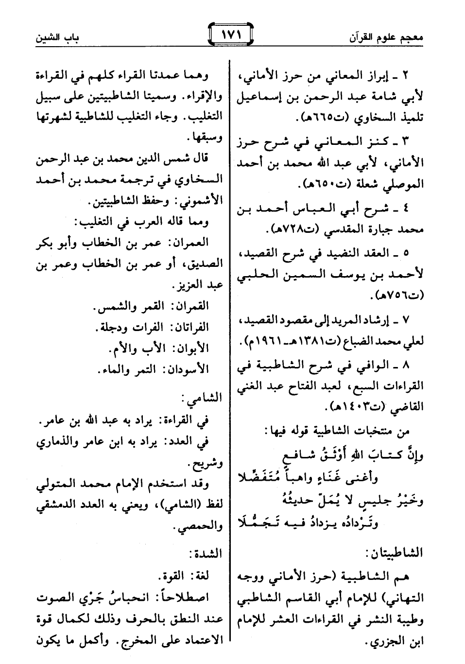 وهما عمدتا القراء كلهم في القراءة والإقراء. وسميتا الشاطبيتين على سبيل التغليب. وجاء التغليب للشاطبية لشهرتها وسبقها.