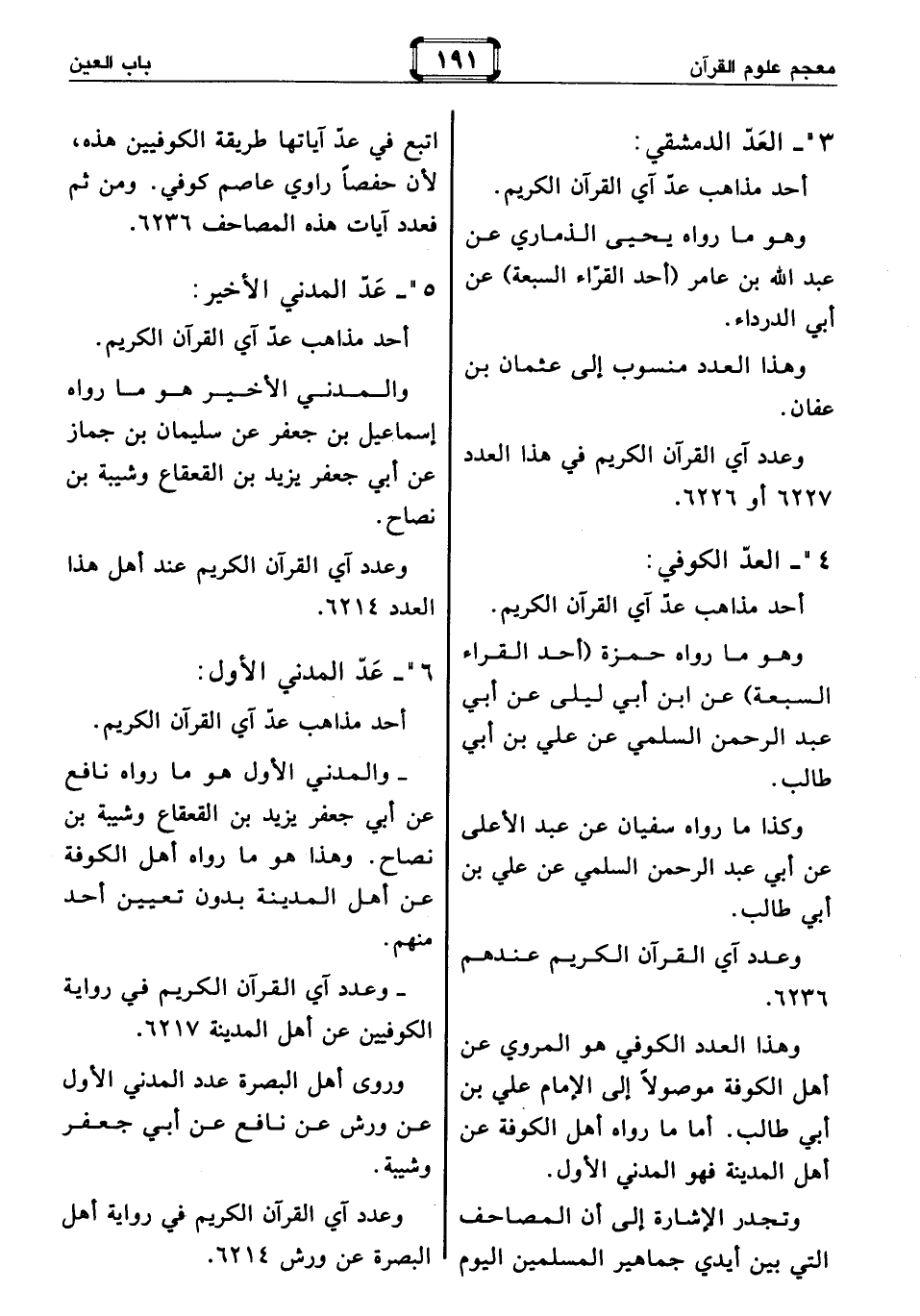 - وعدد آي القرآن الكريم في رواية الكوفيين عن أهل المدينة 6217.