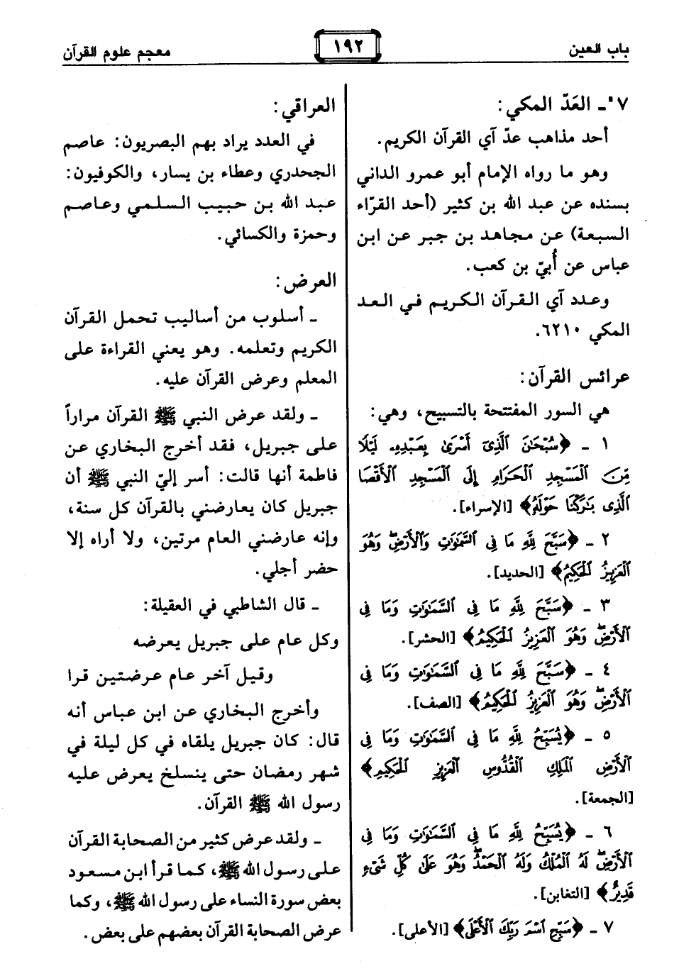 :- أسلوب من أساليب تحمل القرآن الكريم وتعلمه. وهو يعني القراءة على المعلم وعرض القرآن عليه.