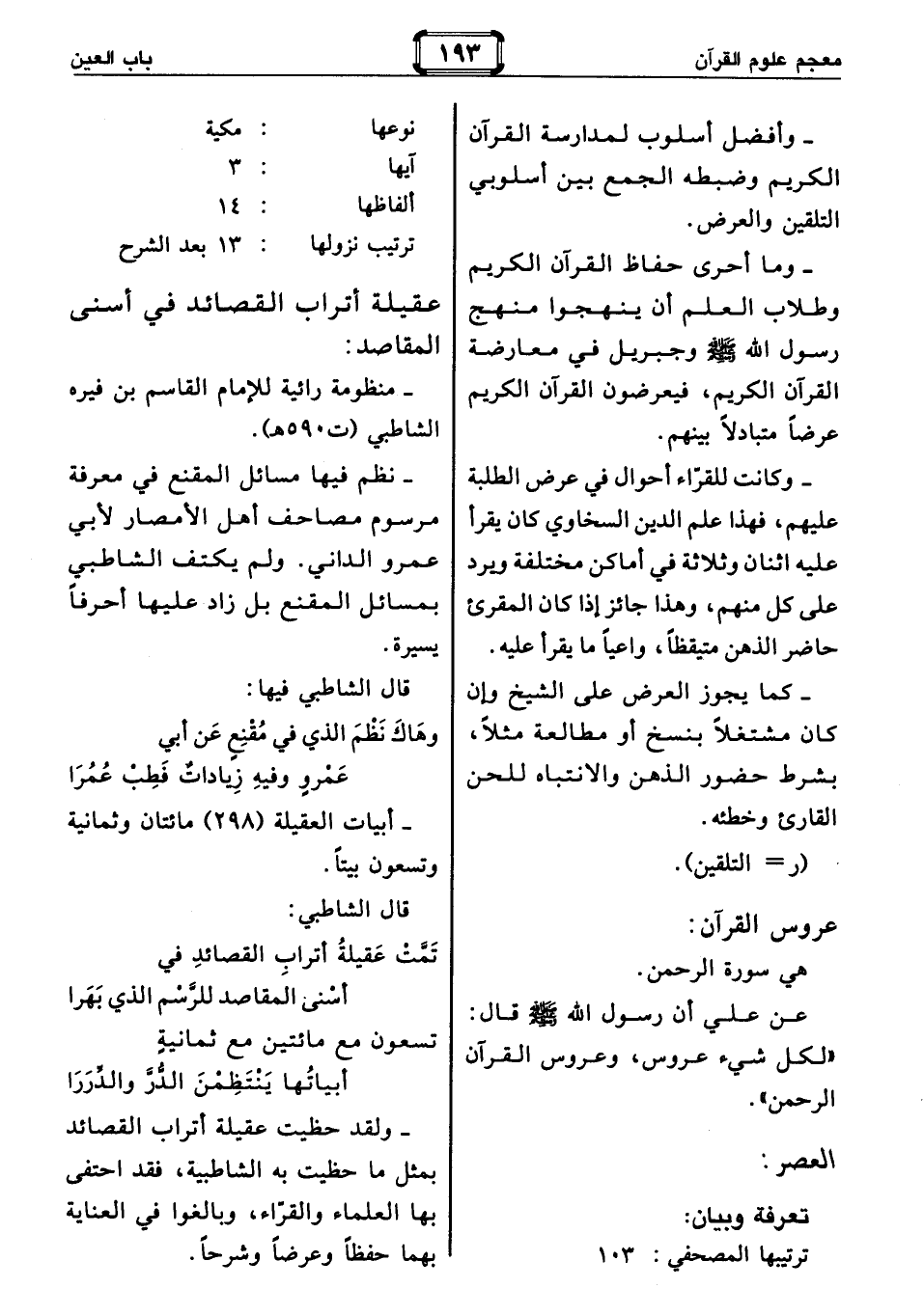 : ترتيبها المصحفي: 103 نوعها: مكية آيها: 3 ألفاظها: 14 ترتيب نزولها: 13 بعد الشرح