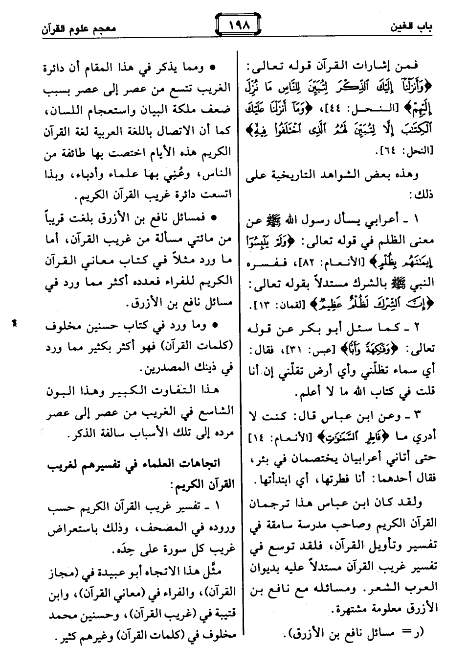 * فمسائل نافع بن الأزرق بلغت قريبا من مائتي مسألة من غريب القرآن، أما ما ورد مثلا في كتاب معاني القرآن الكريم للفراء فعدده أكثر مما ورد في مسائل نافع بن الأزرق.